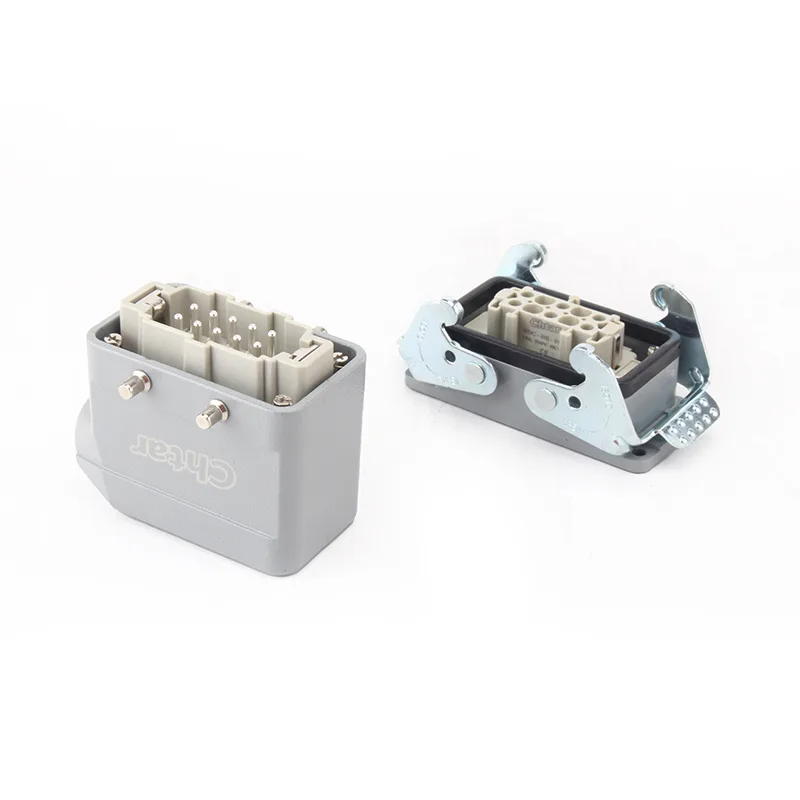 Acești conectori de rezistență TS CHTAR cu 10 pini sunt utilizați pe scară largă cu HE HD HEE, HDD. Este o parte de bază și carcasă mamă a conectorilor de mare rezistență. Este fabricat din aluminiu și proiectat ca o singură cataramă. Tip ușor de utilizat de bloc terminal pentru sarcini grele.
