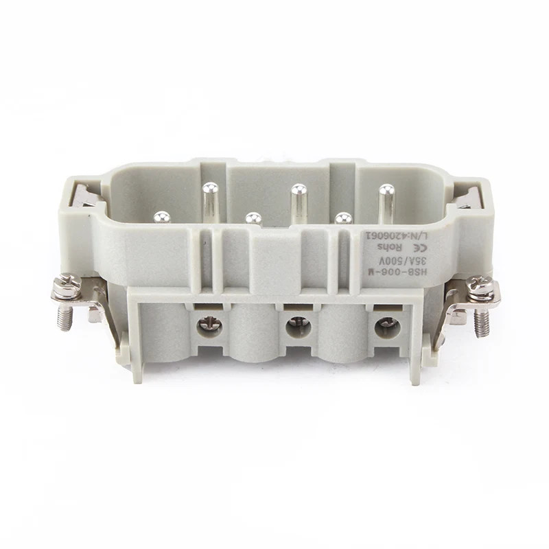 HSB-006-M Conectorii HSB pentru sarcini grele funcționează sub un curent de 35A .35A cu 6 pini. Se oferă pentru diferite condiții de lucru și este popular utilizat în industriile automate și tipuri de conexiuni de cablare a mașinii.