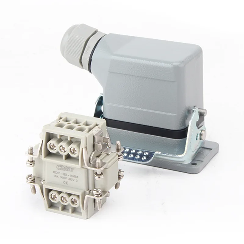 Acești conectori CHTAR cu 6 pini AG Heavy Duty sunt utilizați pe scară largă cu HE HD HEE, HDD. Este o parte de bază și carcasă mamă a conectorilor de mare rezistență. Este fabricat din aluminiu și proiectat ca o singură cataramă. Tip ușor de utilizat de bloc terminal pentru sarcini grele.