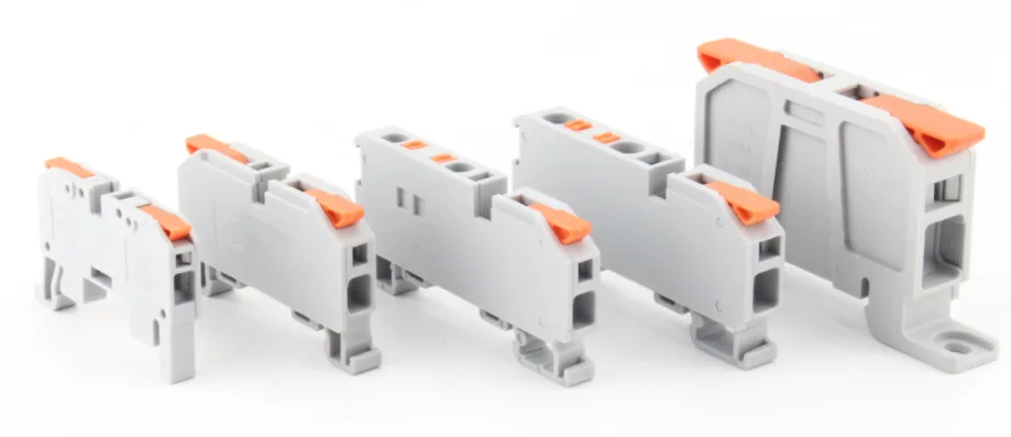 Conectorii rapidi de sârmă de îmbinare pe șină DIN cu pârghii sunt conectori de sârmă cu împingere bine cunoscuți și pot fi asamblați pe șină DIN. Sunt proiectați pentru a îmbina în siguranță dispozitive de conexiune electrică a conductoarelor de cupru pline sau pline de diferite cantități. Funcția lor de bază este de a furniza un racord de întreținere fiabil, permanent și gratuit în cablajul electric.
