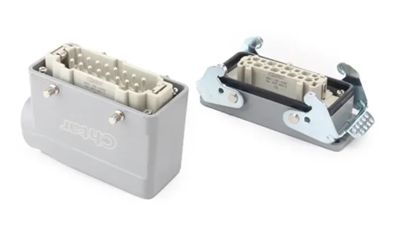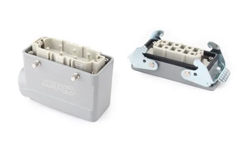 CHTARpoate oferi o gamă completă de carcasă de conectori pentru sarcini grele. Există carcasă care să se potrivească cu HA, HE, HD, HEE și HDD și așa mai departe conectori de serie pentru sarcini grele. De asemenea, lucrează cu diferiți pini, cum ar fi 3, 4, 5, 6, 10, 16, 24, 32 și 48 și așa mai departe. Fabrica poate furniza conexiuni cu direcții diferite ale cablurilor.