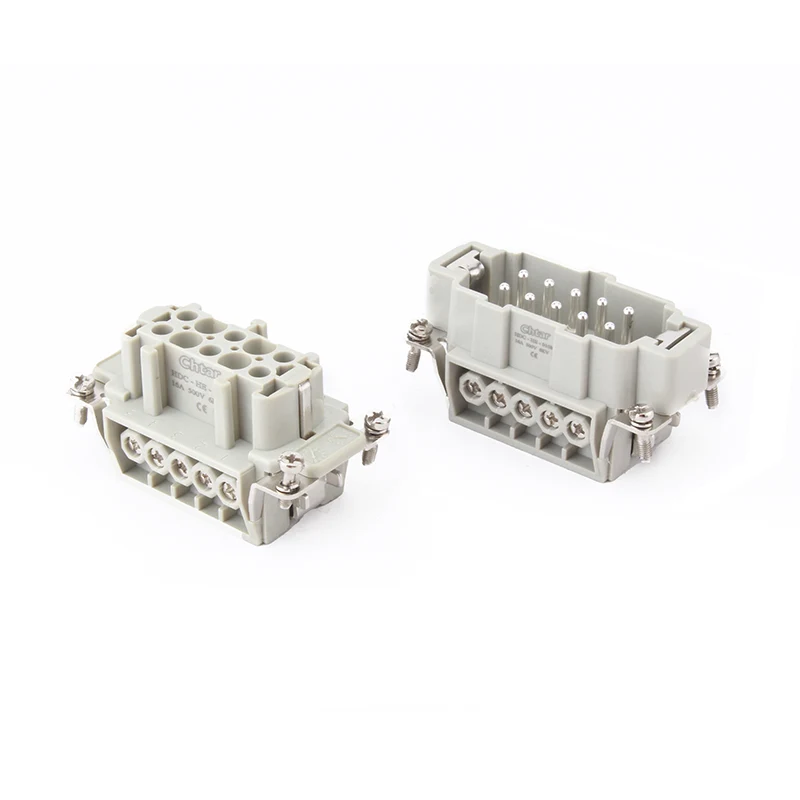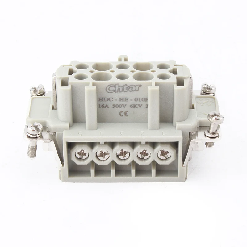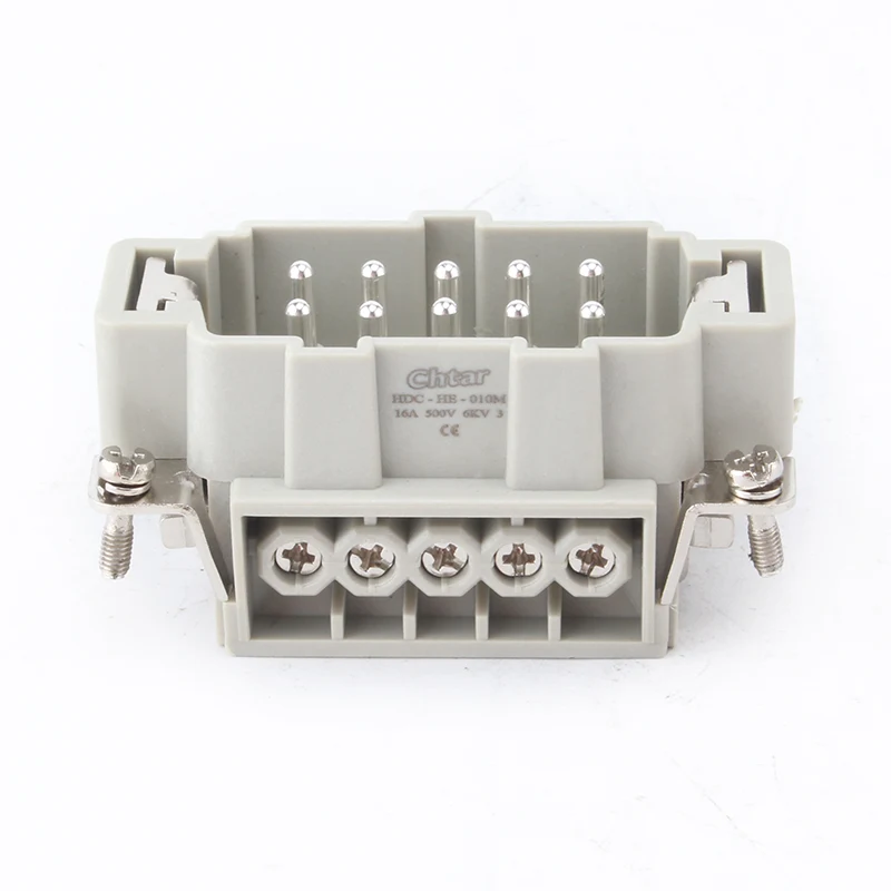 Conectorii M F cu 10 pini cu inserție pentru sarcini grele sunt părți inserate ale HDC-HE-010. Este vorba de piese feminine și masculine de asamblat împreună ca un singur set. Este un curent de 16A cu conexiune cu 10 fire. De asemenea, lucrează cu carcasa conectorului H10B de rezistență grea. Părțile de inserție sunt realizate din material plastic PC, iar știfturile sunt din alamă cu argint. Placat cu argint este o caracteristică de conectare mult mai bună decât alte materiale de placare.