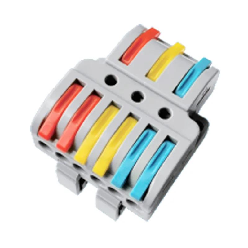 4mm2Conectorii rapidi de sârmă de îmbinare de tip șină DIN Multi-In Multi-Out sunt utilizați pe scară largă pentru conexiunea firelor din domeniul industrial și al sistemului de iluminat. Conectori rapid de fir este un produs eficient, întreținere din carcasa de asamblare șină susține bine funcționat în panoul electric, joncțiune liberă concepută pentru a ajuta electricienii să economisească timp semnificativ de instalare la fața locului.