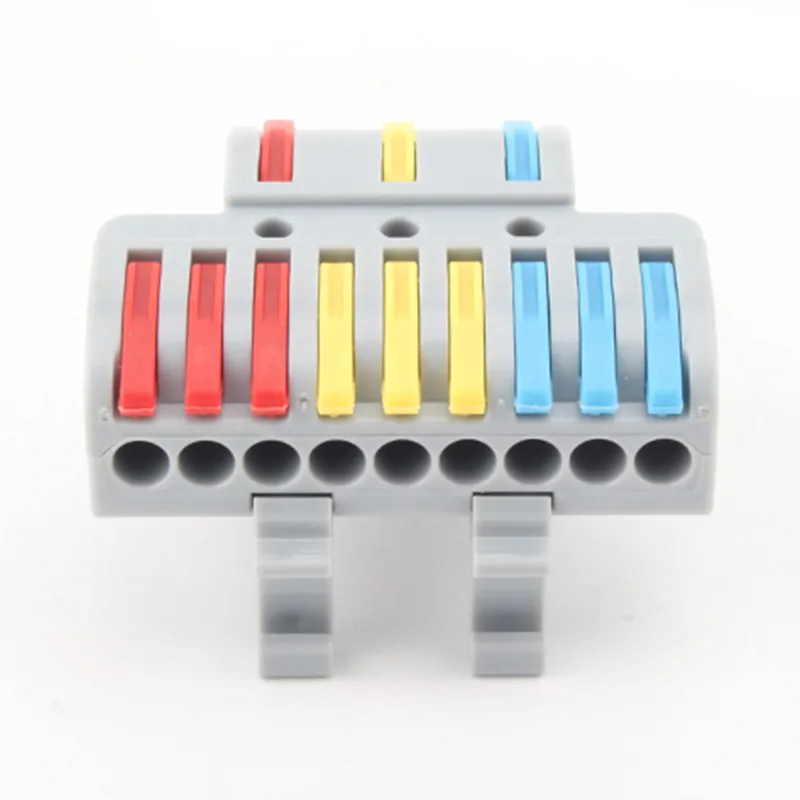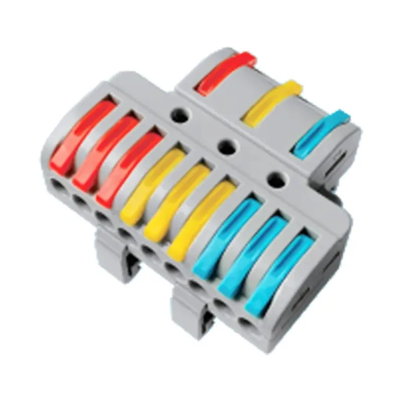 Acestea sunt conectorii rapidi de sârmă de îmbinare de tip șină DIN Multi-In Multi-Out de înaltă calitate ai CHTAR, care sunt utilizați pe scară largă pentru conexiunile cablurilor în sistemele de iluminat și industriale. Incepand din pozitia de lucru, poate fi asamblat pe sina de ghidare. De asemenea, poate funcționa și fără carcasa fără șină și este un accesoriu electric revoluționar conceput special pentru distribuția și convergența cablurilor în dulap. Adoptă un design modular și acceptă instalarea pe șine DIN standard. Prin benzile de conexiune metalice de înaltă conductivitate integrate în interior, permite distribuția paralelă rapidă și fiabilă a unuia sau mai multor fire de intrare la mai multe terminale de ieșire sau convergența mai multor fire.